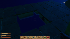 1マス床を開けます。斧でこじ開けてもいいですし、1マス開けて施工しておいてもいいでしょう。