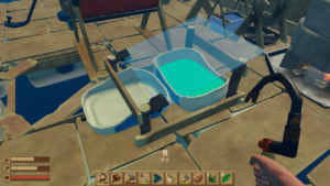 後ろに海水をためたら放置、一定時間で青い水が前に移動します。